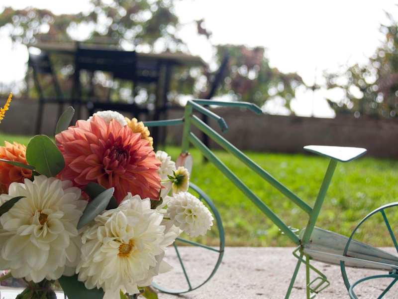 Das Zimmer ist in einem alten Bauwerk untergebracht. Unser Zimmer war außerordentlich groß. Auch hatten wir eine kleine Terrasse mit Wiese dabei. Zum Frühstück gab’s einen Gutschein für ein nahe gelegenes Café.