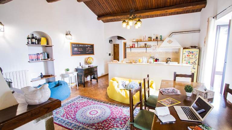 La Dimora di Checchino ist eine gemütliche Unterkunft im Landhausstil, die eine Terrasse mit Blick auf die Stadt und den See bietet, ideal zum Entspannen und für sportliche Aktivitäten. Die Einrichtung der Zimmer trägt zur ländlichen Atmosphäre bei und lädt zum Verweilen ein. Die Unterkunft wird von einem privaten Gastgeber geführt und ist eine Nichtraucherunterkunft.