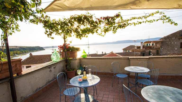 Das La Dimora di Checchino befindet sich in Anguillara Sabazia, einer kleinen Stadt am See Bracciano. Die Unterkunft liegt 3 km vom Bahnhof und nur 50 m von der nächsten Bushaltestelle entfernt. Die Anreise nach Rom dauert etwa 45 Minuten, während Bracciano in einer Entfernung von 10 km liegt.