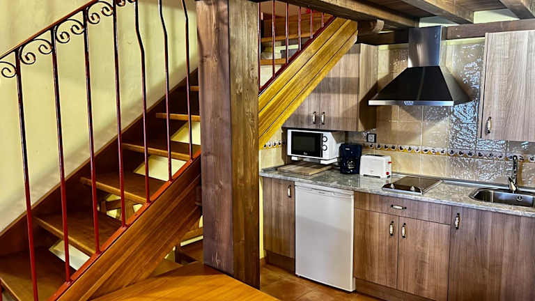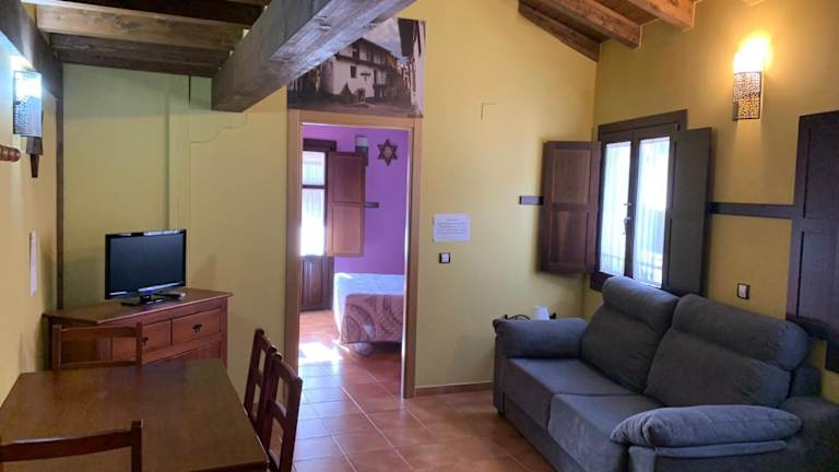 Die charmanten Apartments im Apartamentos rurales La Estrella de David sind im Landhausstil gestaltet und verfügen über einen Balkon, der einen herrlichen Blick auf die Umgebung bietet. Die angenehmen pastellfarbenen Wände harmonieren perfekt mit den attraktiven Holzmöbeln und Oberflächen. Jedes Apartment verfügt über ein gemütliches Sofa, einen Flachbild-TV und eine voll ausgestattete Küche, in der Sie Ihre eigenen Mahlzeiten zubereiten können. Bettwäsche und Handtücher werden gestellt, um Ihnen einen komfortablen Aufenthalt zu bieten.