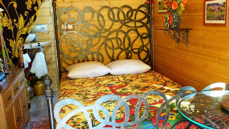 Das La Ferme De Chenevier, La Roulotte Fleurie 2/4pers in Saint-Victor bietet luxuriöse Unterkünfte mit kostenfreiem WLAN und einem atemberaubenden Bergblick. Genießen Sie die entspannte Atmosphäre im Garten, der Gemeinschaftslounge oder auf der Terrasse. Das luxuriöse Zelt mit Balkon bietet alle Annehmlichkeiten, die Sie für einen komfortablen Aufenthalt benötigen, einschließlich eines Flachbild-TVs, einer gut ausgestatteten Küche und einem Whirlpool. Entdecken Sie die Umgebung beim Wandern oder Radfahren und besuchen Sie die nahe gelegenen Sehenswürdigkeiten wie die Valence Parc Expo oder die Schokoladenfabrik Valrhona.