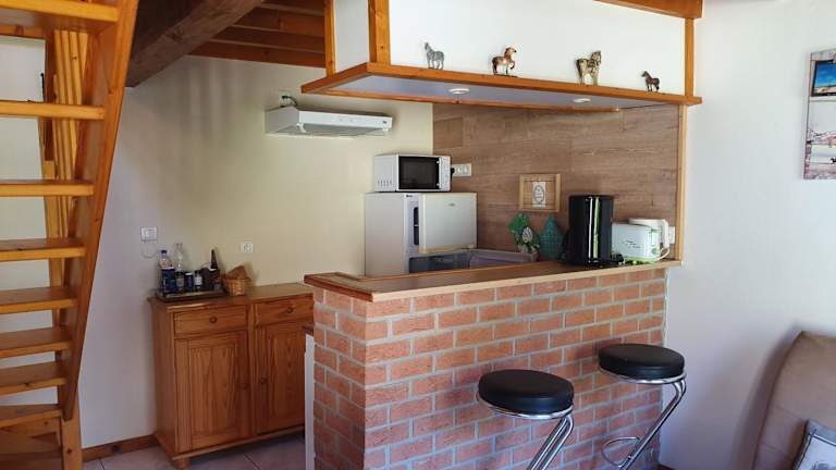 Die Unterkunft bietet die Möglichkeit, eigene Mahlzeiten zuzubereiten, da jede Unterkunft über eine voll ausgestattete Küche verfügt. Ein besonderes Highlight ist der Grillplatz im Freien, auf dem Sie köstliche Gerichte zubereiten können. Genießen Sie Ihr Essen auf der Terrasse und erleben Sie die entspannte Atmosphäre des Hotels.