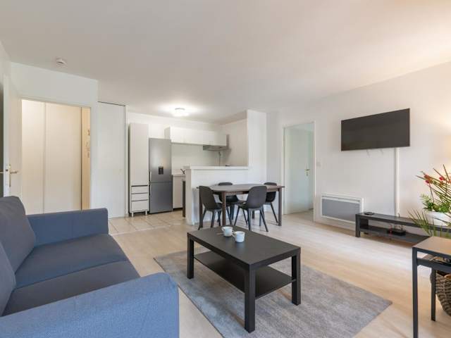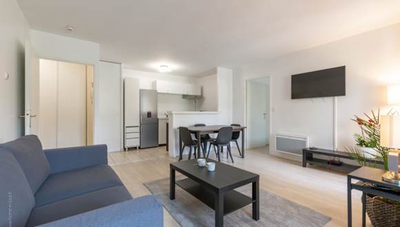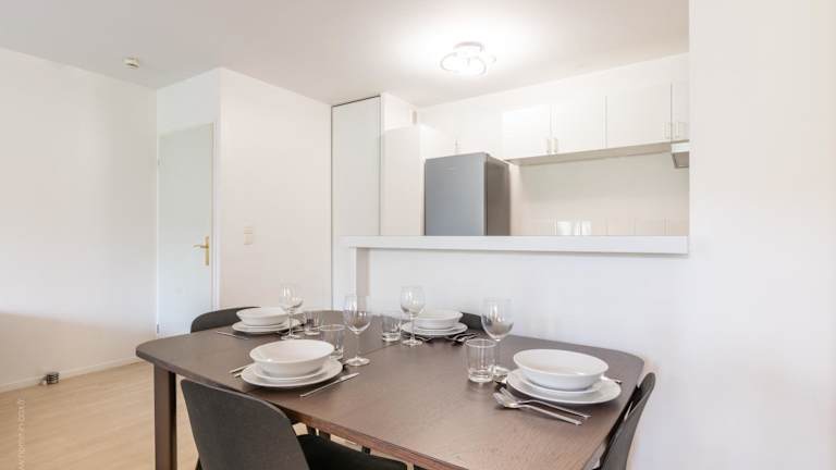 Die Ferienwohnung umfasst 1 Schlafzimmer, ein Wohnzimmer und eine voll ausgestattete Küche, die mit Kühlschrank und Geschirrspüler ausgestattet ist. Zudem werden Handtücher und Bettwäsche bereitgestellt.