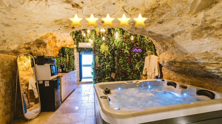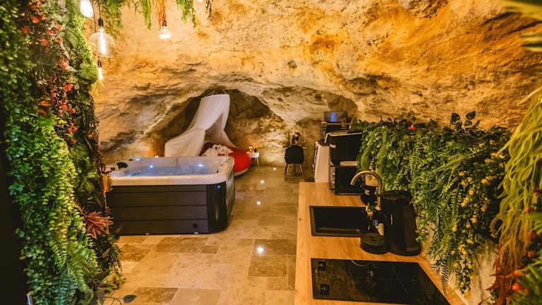 La Grotte Fleurie ist ein Ferienhaus, das eine Unterkunft mit kostenlosem WLAN und einem Garten bietet. Die Unterkunft verfügt über eine Klimaanlage und bietet Zugang zu einer Küche sowie eine entspannende Atmosphäre.