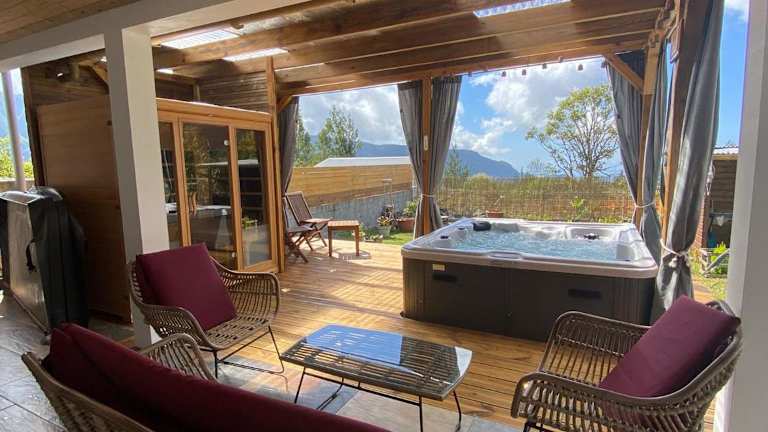 La kaz 57 - Maison avec SPA privatif ist ein Ferienhaus, das über eine Terrasse und eine Veranda/PATIO mit Aussicht auf die Berge verfügt. Es bietet einen kostenlosen Privatparkplatz und zeichnet sich durch einen Wellness-Bereich mit Sauna und Whirlpool aus.
