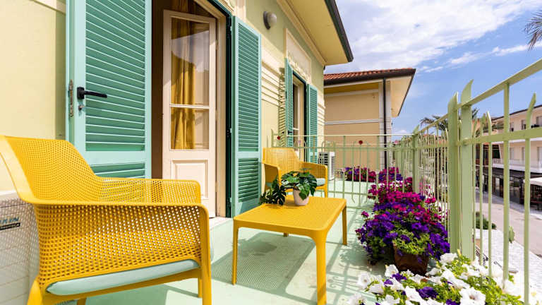 Die Zimmer sind mit Klimaanlage und einem privaten Badezimmer mit Dusche ausgestattet und bieten die idealen Voraussetzungen zur Entspannung. Einige Zimmer verfügen zusätzlich über einen privaten Balkon oder eine Terrasse, von wo aus die Gäste die Aussicht genießen können. In den gemeinschaftlichen Bereichen stehen elegante Sofas, Teppiche und originale Art Nouveau Kronleuchter zur Verfügung.