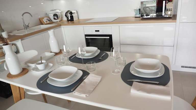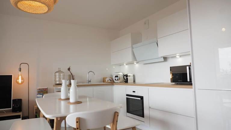 Die Unterkunft verfügt über eine gut ausgestattete Küche mit einem Kühlschrank und einem Geschirrspüler, was Möglichkeiten zur Selbstverpflegung bietet. Eine Kaffeemaschine steht zur Verfügung.