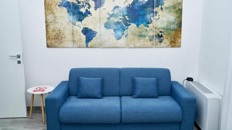Die Ferienwohnung in La Maison Apparthotel ist mit Klimaanlage ausgestattet und umfasst 3 Schlafzimmer sowie ein Wohnzimmer. Sie verfügt über eine voll ausgestattete Küche mit Kühlschrank und Kaffeemaschine, ein Badezimmer mit Bidet und Dusche, sowie Annehmlichkeiten wie einen Flachbild-TV mit Satellitenkanälen, einen DVD-Player, einen Computer und einen CD-Player.