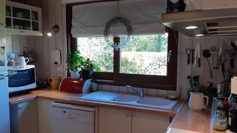 Die Unterkunft verfügt über eine Gemeinschaftsküche, in der die Gäste ihre Mahlzeiten zubereiten können. Es gibt auch eine Terrasse und einen Grill für die Outdoor-Verpflegung.