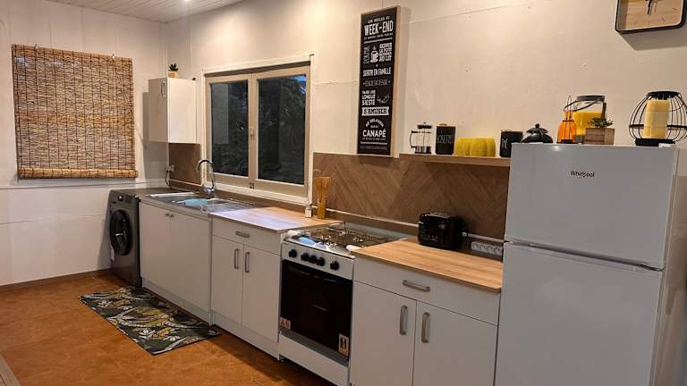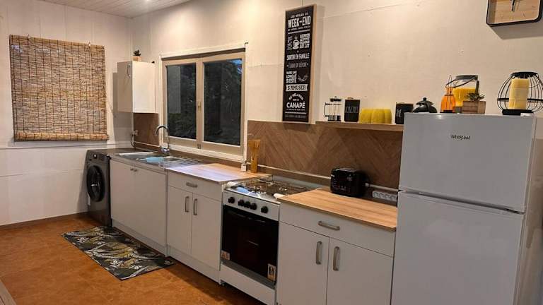 Das Ferienhaus umfasst 3 Schlafzimmer, ein Wohnzimmer und eine voll ausgestattete Küche mit Kühlschrank und Wasserkocher. Ein Badezimmer mit Dusche sowie Handtücher und Bettwäsche sind ebenfalls vorhanden.