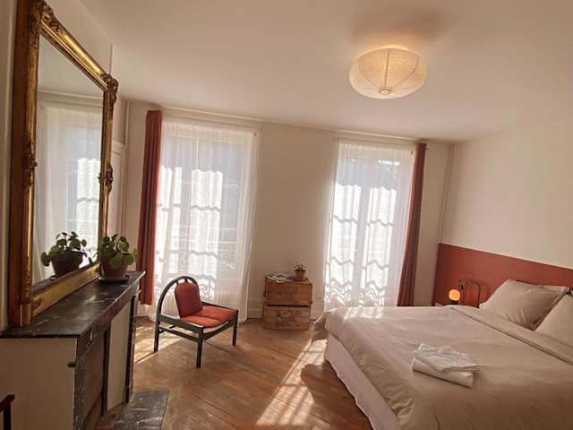 Mamers, in der Region Pays-de-la-Loire. Die Unterkunft befindet sich in einer ruhigen Umgebung mit Gartenblick und bietet einen Balkon sowie eine Terrasse.