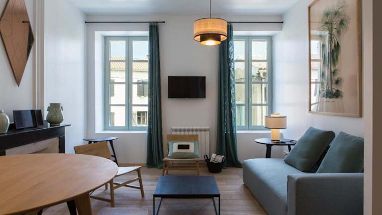 Das La Maison des Vendangeurs sur Mer befindet sich in der Altstadt von Gruissan, einem malerischen Küstenort in Südfrankreich. Das Gebäude selbst stammt aus dem 19. Jahrhundert und wurde liebevoll renoviert. In unmittelbarer Nähe finden Sie zahlreiche Bars, Geschäfte und Restaurants, die Ihnen eine Vielzahl von kulinarischen Köstlichkeiten bieten. Die Region ist auch für ihre Weinproduktion bekannt, daher sollten Sie unbedingt einige der lokalen Weine probieren. Wassersportbegeisterte werden die Nähe zum Strand zu schätzen wissen, wo sie Windsurfen und Kitesurfen ausprobieren können. Wenn Sie die Umgebung erkunden möchten, ist die Stadt Narbonne nur 14 km entfernt. Der nächstgelegene Flughafen Béziers Cap d'Agde ist etwa 50 km entfernt.