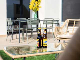 Das Ferienhaus beinhaltet zwei Schlafzimmer und ist mit Klimaanlage ausgestattet. Zur Ausstattung gehören ein Satelliten-Flachbild-TV, ein Essbereich, eine Küche mit Kühlschrank und ein Wohnzimmer. Handtücher und Bettwäsche werden in der Unterkunft bereitgestellt.