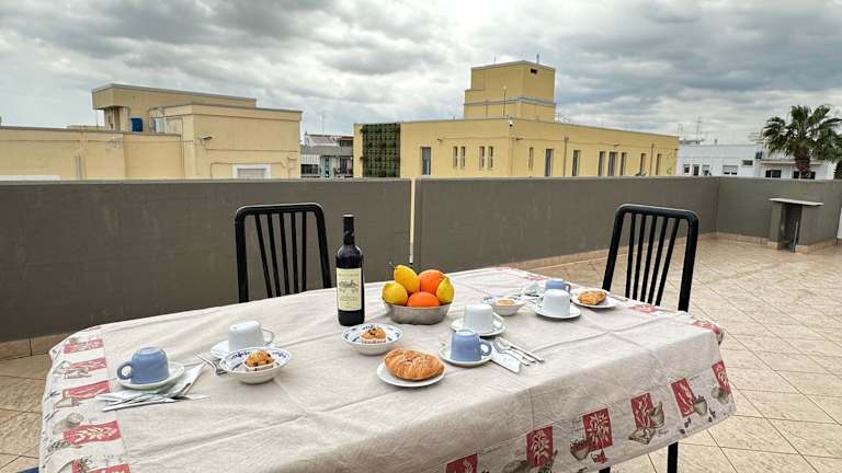 LA MANSARDA - Terrazze & Relax a due passi da Bari bietet eine Ferienwohnung mit Gemeinschaftslounge, Terrasse und Gemeinschaftsküche. Die Unterkunft wird von einem privaten Gastgeber geführt und bietet einen gemütlichen Aufenthalt mit Annehmlichkeiten wie kostenlosem WLAN und Klimaanlage.