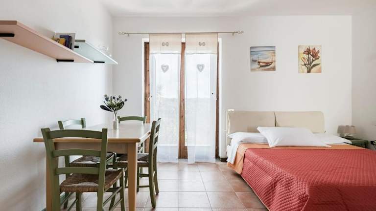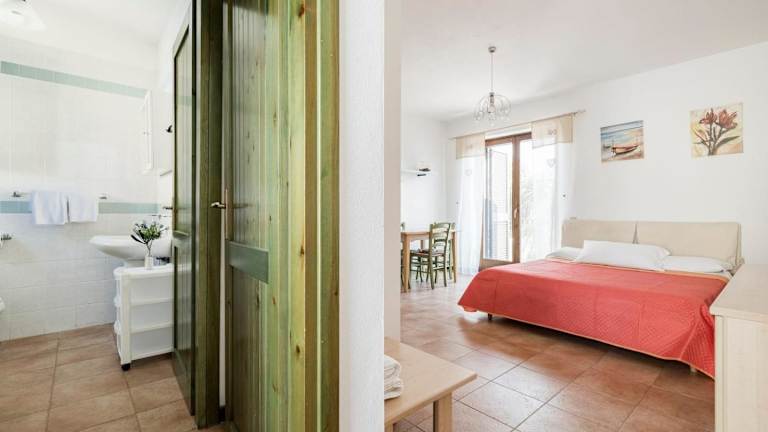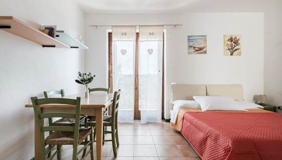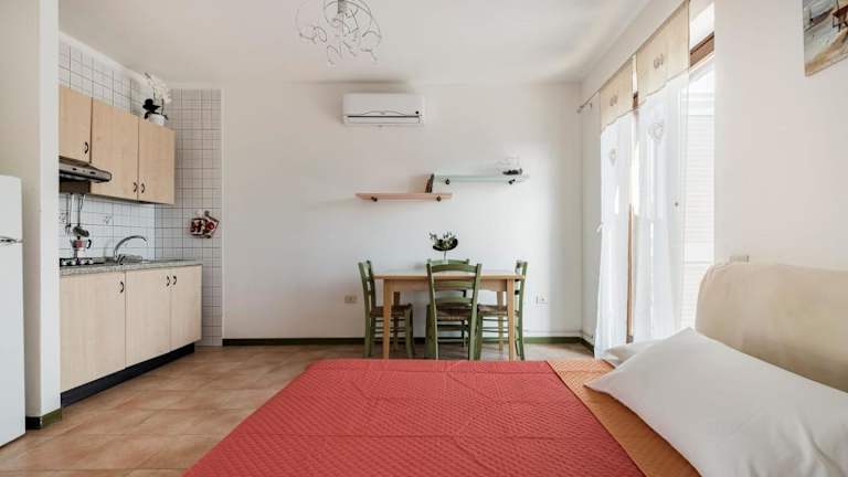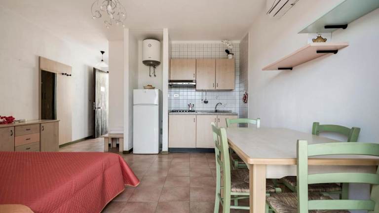 Das klimatisierte Apartment in der Residence La Pavoncelle Santa Terese Gallura - ISR01305-CYB verfügt über ein Schlafzimmer, ein Wohnzimmer und eine gut ausgestattete Küche mit Kühlschrank. Ein TV-Gerät sorgt für Unterhaltung und Komfort.