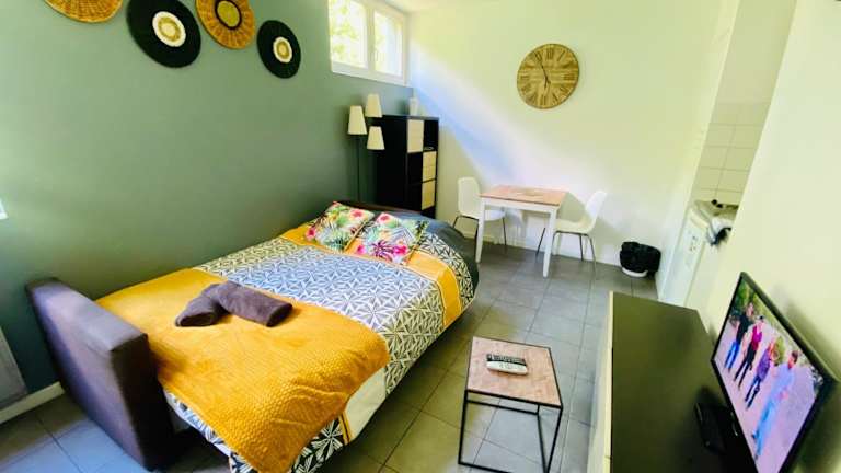 Das La Paille Metz Luxembourg Parking Un-Séjour-à-Part befindet sich in Metz und bietet einen bezaubernden Blick auf den Garten. Die Unterkunft liegt nur 1,8 km vom Bahnhof Metz und 4,5 km vom Parc des Expositions de Metz entfernt. In nur 1,6 km Entfernung finden Sie auch das Centre Pompidou-Metz. Die Lage ist also ideal, um Metz und seine Sehenswürdigkeiten zu erkunden.