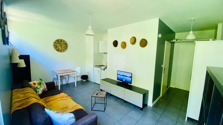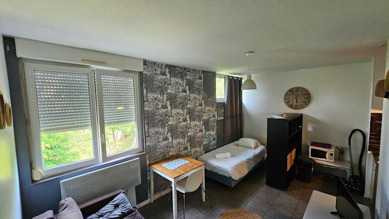 Das Apartment im La Paille Metz Luxembourg Parking Un-Séjour-à-Part verfügt über ein gemütliches Schlafzimmer, ein geräumiges Wohnzimmer und eine voll ausgestattete Küchenzeile. Die Küchenzeile umfasst einen Kühlschrank und eine Kaffeemaschine, so dass Sie sich bequem Ihre eigenen Mahlzeiten zubereiten können. Das Apartment verfügt auch über ein Badezimmer mit Dusche und Badewanne. Handtücher und Bettwäsche werden gestellt, so dass Sie sich um nichts kümmern müssen.