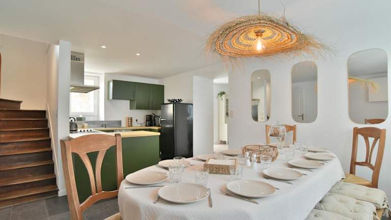 Verbringen Sie einen entspannten Urlaub im La Paillotte - à 7min de la plage, das nur 7 Gehminuten vom Strand entfernt liegt. Das Ferienhaus bietet kostenfreies WLAN, eine Terrasse und eine voll ausgestattete Küche. Mit 5 Schlafzimmern bietet es ausreichend Platz für große Familien oder Gruppen. Die Umgebung bietet zahlreiche Attraktionen wie den Park Port-Breton und den Yachthafen.