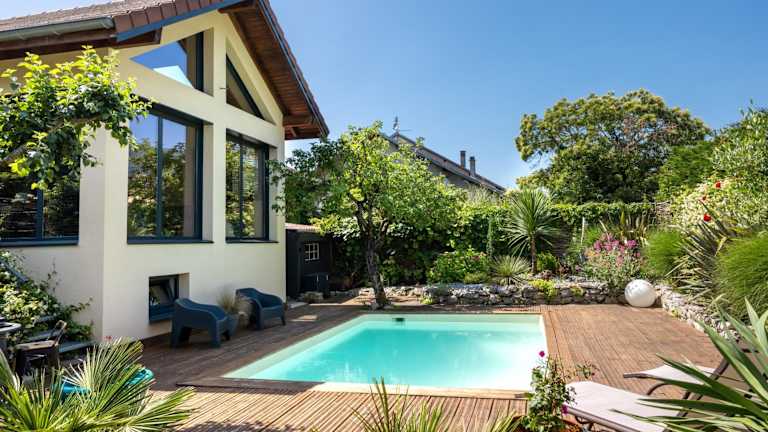 La Paradisiaque - Near Geneva, Pool, Calm & Mountain bietet Übernachtungsmöglichkeiten in einer Ferienwohnung mit einem saisonalen Außenpool sowie einer Terrasse. Die Unterkunft verfügt über einen eigenen Garten und kostenlosen Privatparkplatz und ist für Nichtraucher konzipiert.