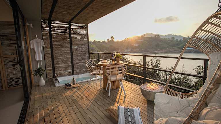 In den 16 Zimmern des Hotels erwartet Sie ein komfortables und stilvolles Ambiente. Jedes Zimmer verfügt über einen Kamin und einen privaten Whirlpool im Freien, in dem Sie sich entspannen können. Die Zimmer sind mit hochwertigen Betten und kostenlosem WLAN ausgestattet. In den Kochnischen können Sie Ihre eigenen Mahlzeiten zubereiten und die Smart Speakers sorgen für Unterhaltung.
