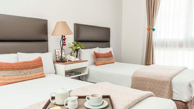 Die Zimmer im La Paz Apart Hotel sind mit einer Klimaanlage, Heizung und Ventilator ausgestattet. Es stehen Doppelzimmer mit separaten Schlafzimmern zur Verfügung. Die Ausstattung umfasst unter anderem einen Safe, eine Minibar, einen Kühlschrank, eine Mikrowelle, sowie Kaffee- und Teezuberiter. Des Weiteren sind ein TV-Gerät, ein Radio und kostenfreies WLAN verfügbar. Die Badezimmer sind mit Dusche, Badewanne und Haartrockner ausgestattet und bieten Kosmetikartikel. Es sind auch Nichtraucher- sowie familienfreundliche Zimmer verfügbar.