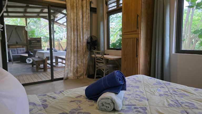 Der Bauernhof verfügt über zwei Schlafzimmer, ein Wohnzimmer und eine voll ausgestattete Küchenzeile mit Kühlschrank und Wasserkocher. Ein Badezimmer mit Dusche ist ebenfalls vorhanden. Zu den Annehmlichkeiten gehören Handtücher und Bettwäsche, die entsprechend den Richtlinien der örtlichen Behörden gereinigt werden.