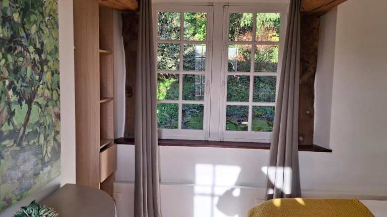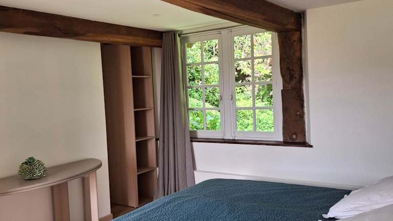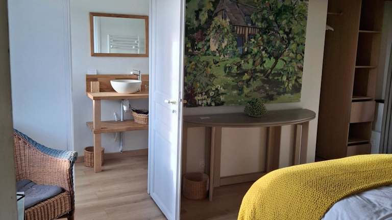 Die Zimmer im Chambre d'Hôte Près de Deauville bieten einen gemütlichen Rückzugsort mit Blick auf den Garten. Jedes Zimmer verfügt über ein komfortables Kingsize-Bett, ein eigenes Bad und ein separates WC. Die Einrichtung ist charmant und sorgt für eine angenehme Atmosphäre.