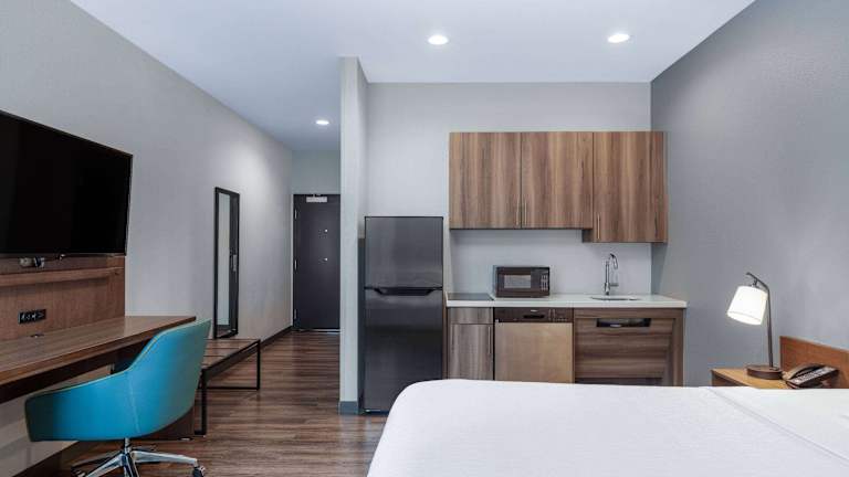 Die Zimmer der Unterkunft sind mit Klimaanlage, Kühlschrank, Mikrowelle, Kaffeemaschine und einem eigenen Bad ausgestattet. Die Badeinrichtungen umfassen eine Badewanne oder Dusche, und es werden kostenlose Pflegeprodukte bereitgestellt. Des Weiteren sind ein Schreibtisch, ein Haartrockner und Bettwäsche in den Wohneinheiten vorhanden.