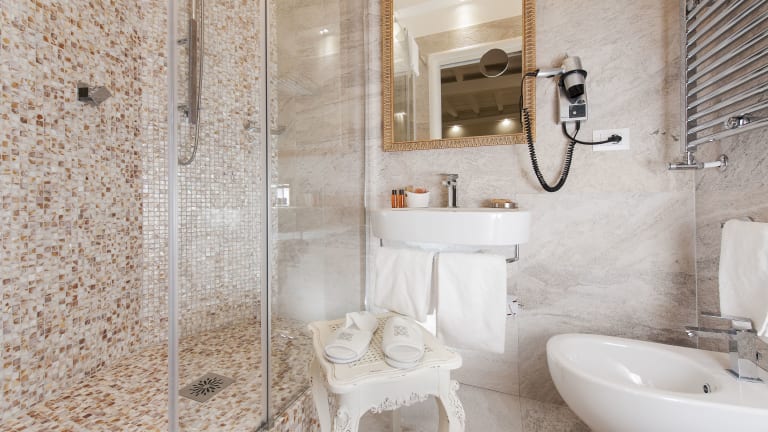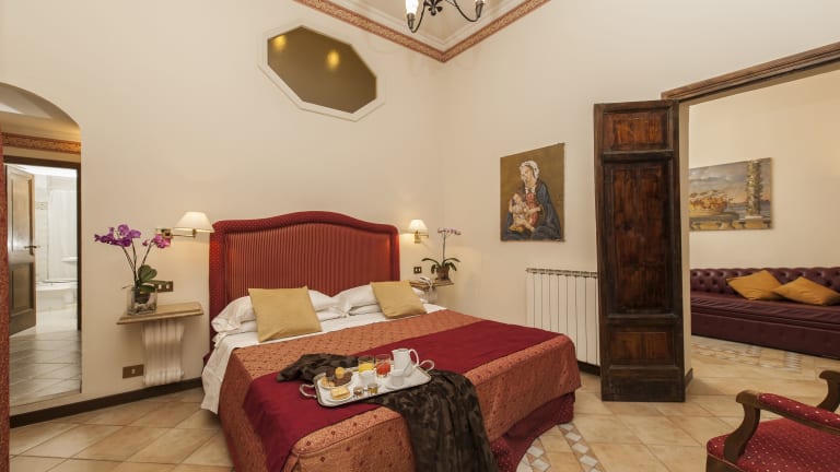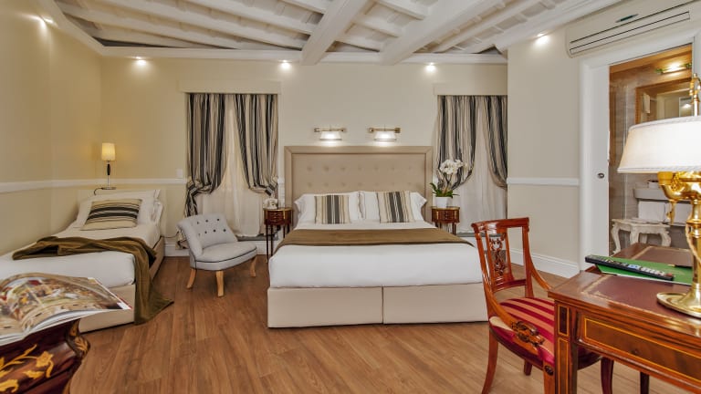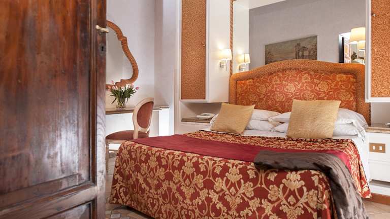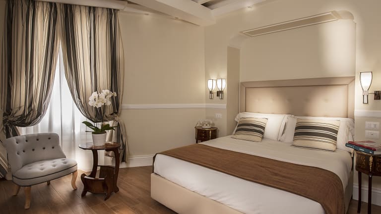 Die Zimmer im Hotel La Residenza del Sole al Pantheon sind elegant eingerichtet und bieten Ihnen allen Komfort, den Sie für einen angenehmen Aufenthalt benötigen. Jedes Zimmer ist klimatisiert und verfügt über einen Flachbild-Sat-TV, eine Minibar und einen Safe. Das private Badezimmer ist mit einer Dusche, einem Haartrockner und kostenfreien Pflegeprodukten ausgestattet. Für Familien mit Kindern stehen auch Familienzimmer zur Verfügung.