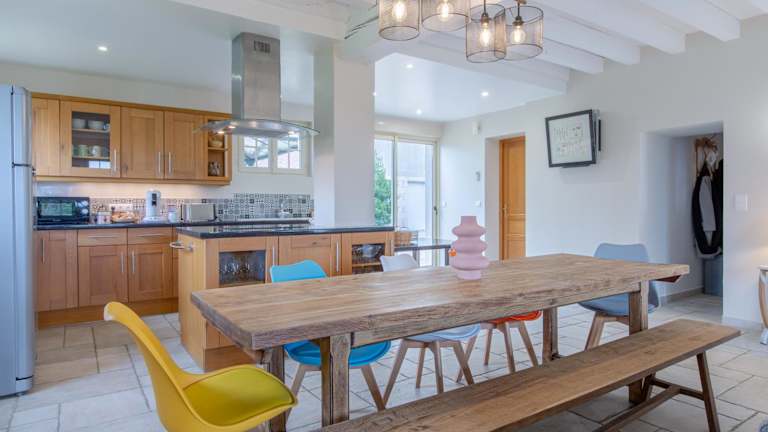 Das Ferienhaus verfügt über eine voll ausgestattete Küche, in der Sie Ihre eigenen Mahlzeiten zubereiten können. Es gibt auch viele Restaurants in der Umgebung, in denen Sie lokale Spezialitäten genießen können.
