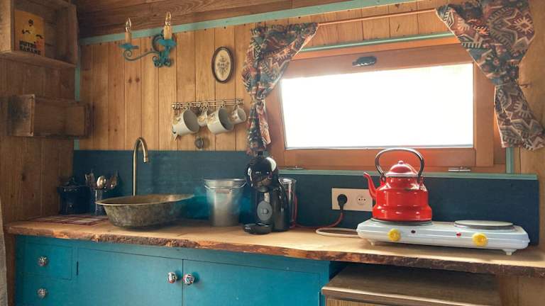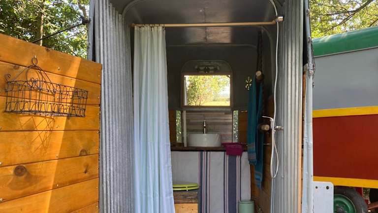 Im La roulotte cavalière können Sie Ihre eigenen Mahlzeiten zubereiten, da jedes Zelt über eine voll ausgestattete Küchenzeile verfügt. Alternativ können Sie auch die Grillmöglichkeiten im Garten nutzen und unter freiem Himmel speisen.