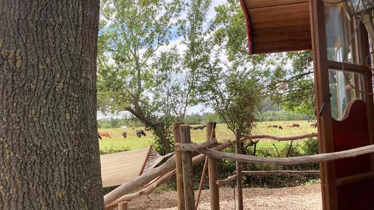 Das La roulotte cavalière bietet kostenfreie Fahrräder für seine Gäste, um die Umgebung zu erkunden. Nutzen Sie diese Gelegenheit, um die schöne Landschaft der Region zu entdecken. Entspannen Sie auch im eigenen Garten des Zeltes oder auf der Terrasse und genießen Sie die Ruhe und den Komfort dieser einzigartigen Unterkunft.
