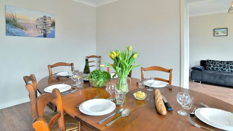 Das Ferienhaus umfasst 3 Schlafzimmer und ein Wohnzimmer, in dem sich die Gäste entspannen können. Die voll ausgestattete Küche bietet einen Kühlschrank und eine Kaffeemaschine. Das Badezimmer ist mit einer Dusche und einem Haartrockner ausgestattet. Handtücher und Bettwäsche werden zur Verfügung gestellt.