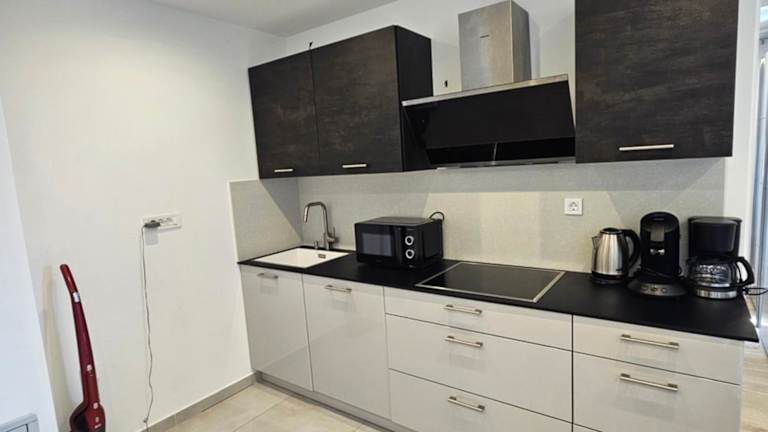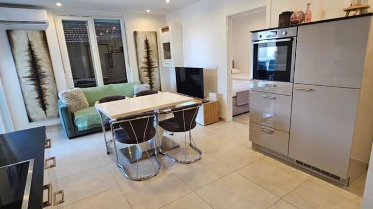 Die Ferienwohnung ist klimatisiert und umfasst 2 Schlafzimmer, ein Wohnzimmer, eine voll ausgestattete Küche mit einem Kühlschrank und einer Kaffeemaschine sowie ein Badezimmer mit Dusche und Haartrockner. Handtücher und Bettwäsche werden ebenfalls bereitgestellt.