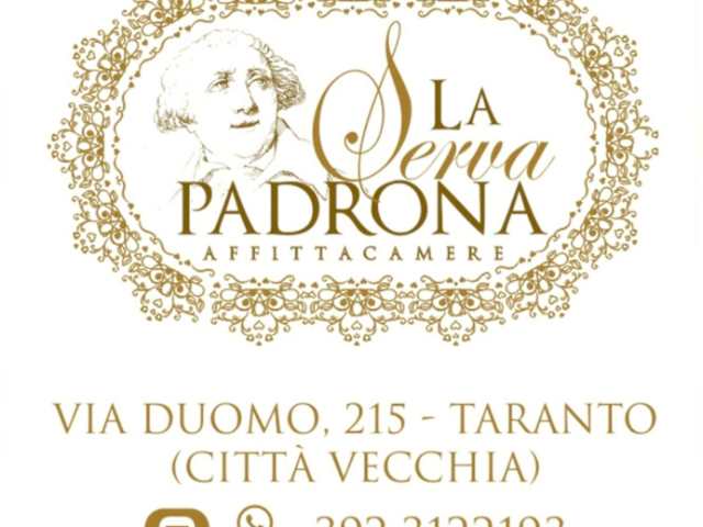 La Serva Padrona befindet sich in Taranto, weniger als 3 km von Taranto Sotterranea und 5,3 km vom Erasmo Iacovone-Stadion entfernt. In der Nähe liegen interessante Sehenswürdigkeiten wie das Castello Aragonese, das MARTA − Archäologische Nationalmuseum Tarent und die Kathedrale von Tarent. Der nächstgelegene Flughafen ist der Flughafen Brindisi, etwa 74 km entfernt.