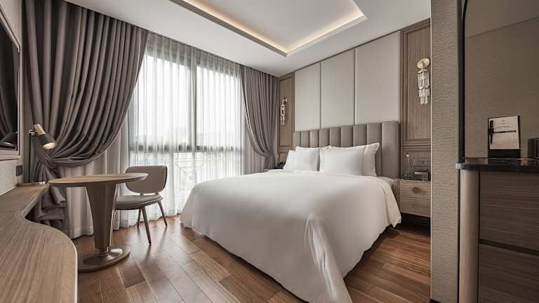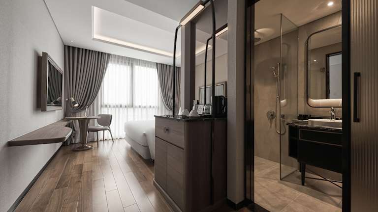 Die Gästezimmer sind klimatisiert und mit Teppichböden ausgestattet. Jedes Zimmer bietet ein Doppel-, Queensize- oder Kingsize-Bett sowie eine Minibar, einen Safe, einen Schreibtisch und ein eigenes Badezimmer mit Dusche. Einige Zimmer verfügen über einen Balkon oder Stadtblick. Zur Ausstattung gehören ein Flachbild-TV, ein Wasserkocher, Hausschuhe und kostenfreies WLAN.