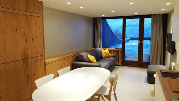 Die Ferienwohnung umfasst ein Schlafzimmer, ein Wohnzimmer und ein Badezimmer mit einem Bidet. Zur Ausstattung gehören ein Flachbild-TV sowie eine gut ausgestattete Küche mit Kühlschrank und Mikrowelle. Eine Terrasse mit Bergblick ist ebenfalls vorhanden. Handtücher und Bettwäsche können gegen Aufpreis bereitgestellt werden.
