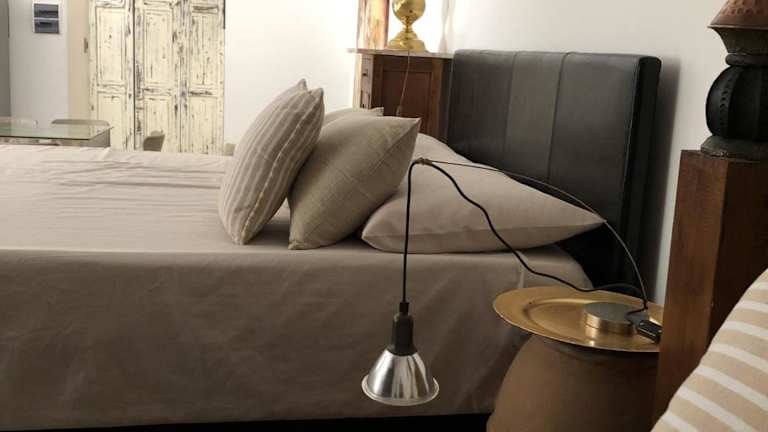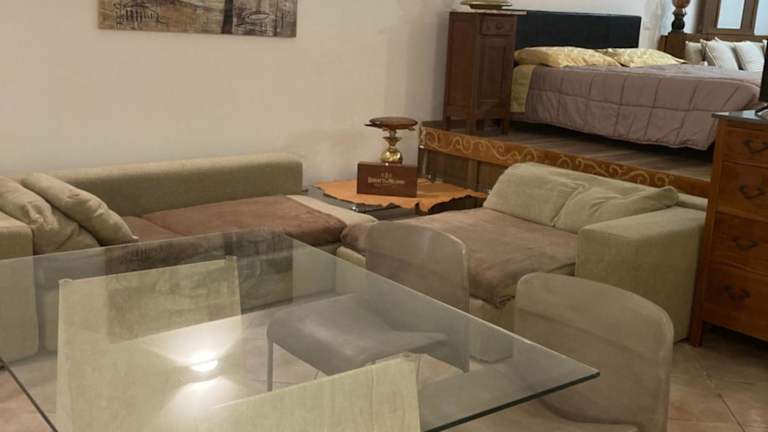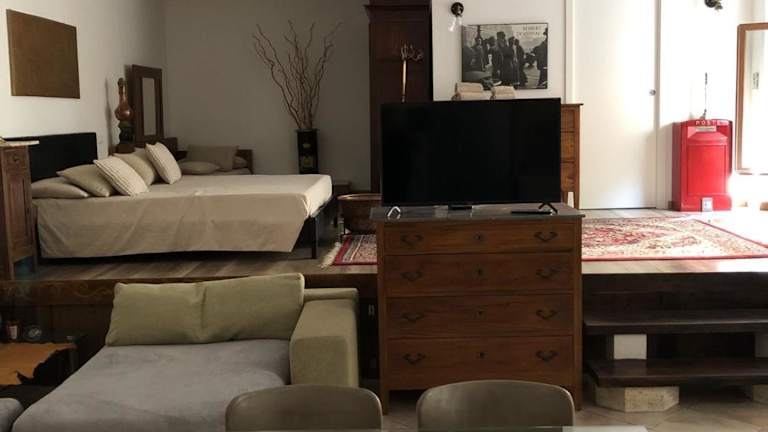 Die Ferienwohnung besteht aus einem Schlafzimmer, einem Wohnzimmer und einer voll ausgestatteten Küche mit Kühlschrank und Kaffeemaschine. Des Weiteren verfügt sie über ein Badezimmer mit Bidet und Dusche. Handtücher und Bettwäsche werden bereitgestellt.
