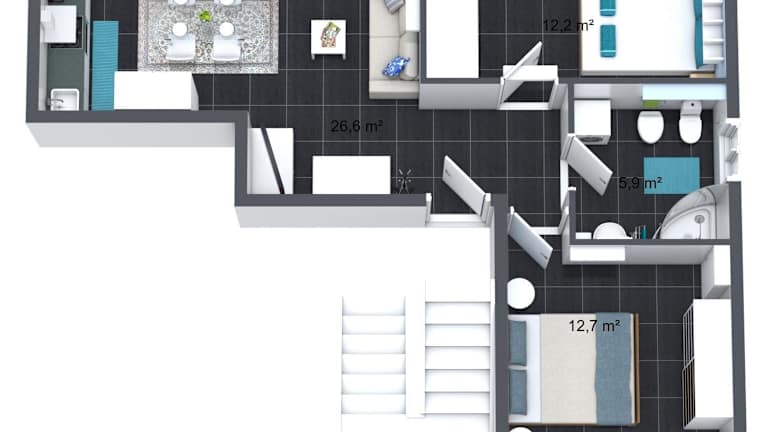 Die Ferienwohnung ist klimatisiert und umfasst zwei Schlafzimmer, ein Wohnzimmer sowie eine voll ausgestattete Küche, die mit einem Geschirrspüler und einer Kaffeemaschine ausgestattet ist. Zudem verfügt sie über ein Badezimmer mit Bidet und Dusche. Ein Flachbild-TV ist ebenfalls vorhanden.