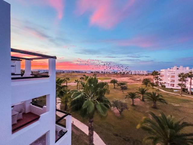 Das klimatisierte Apartment im La Terraza Azul - las terrazas de la torre - regio murcia bietet geräumige Unterkünfte mit 2 Schlafzimmern, einer voll ausgestatteten Küche, einem gemütlichen Sitzbereich und einem modernen Badezimmer. Vom Balkon aus können Sie den herrlichen Poolblick genießen. Handtücher und Bettwäsche werden gestellt, sodass Sie sich um nichts kümmern müssen.