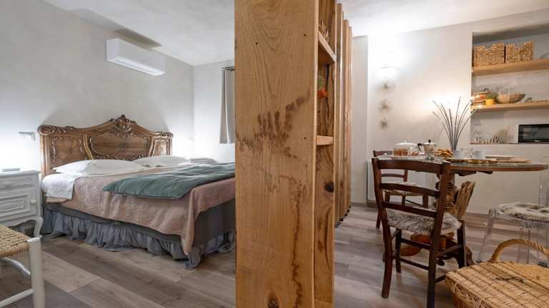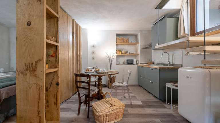 Das Apartment im La Terrazza Naturas con vasca per due bietet ein komfortables Schlafzimmer, eine voll ausgestattete Küche mit Kühlschrank und Mikrowelle sowie ein modernes Badezimmer mit Bidet. Handtücher und Bettwäsche werden gestellt und kostenfreies WLAN ist verfügbar.