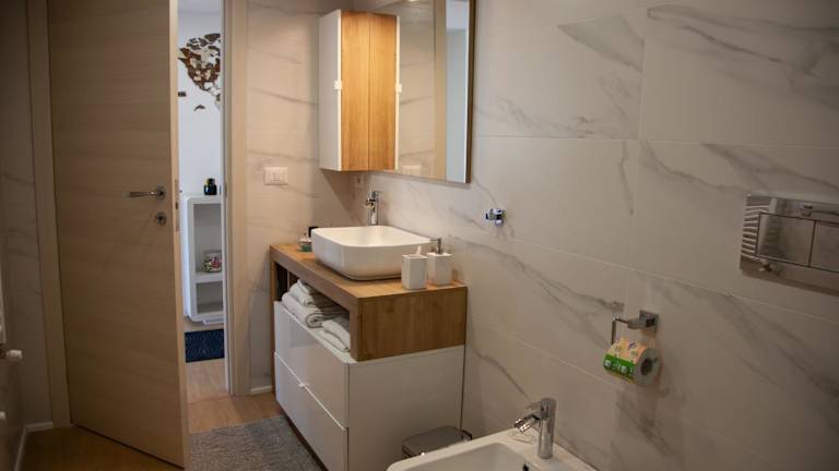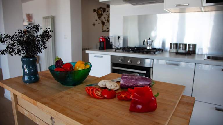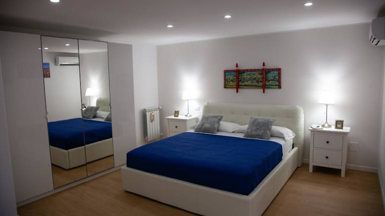 Die Ferienwohnung ist klimatisiert und umfasst zwei Schlafzimmer, ein Wohnzimmer und eine voll ausgestattete Küche mit Kühlschrank und Kaffeemaschine. Für den Komfort der Gäste stehen zwei Badezimmer mit Bidet und Dusche zur Verfügung. Handtücher und Bettwäsche werden bereitgestellt.