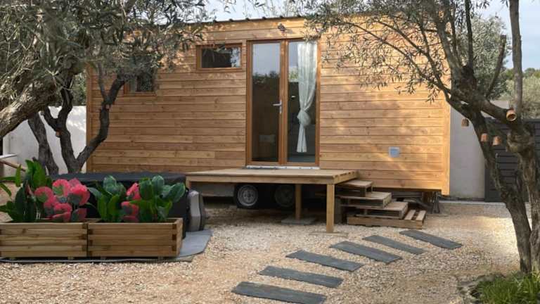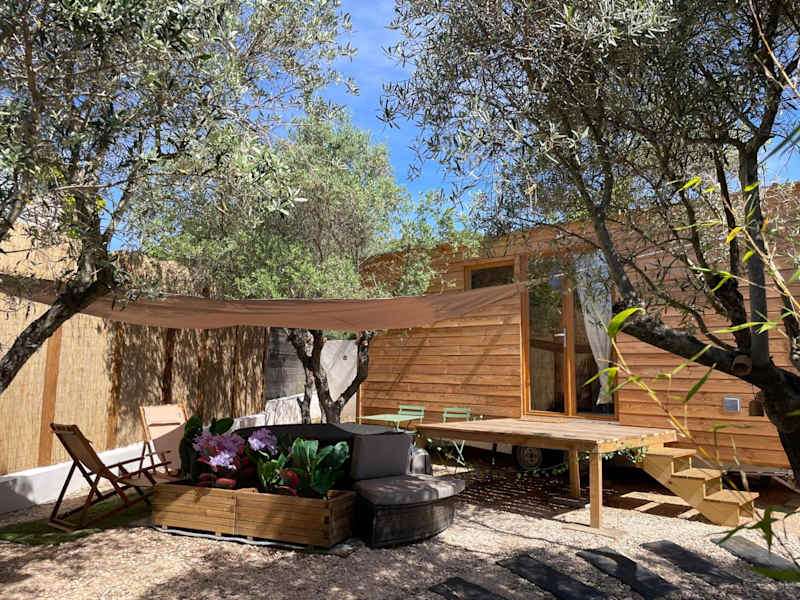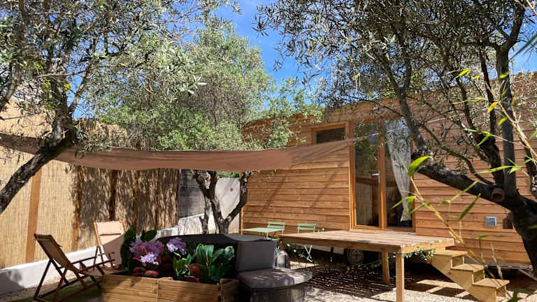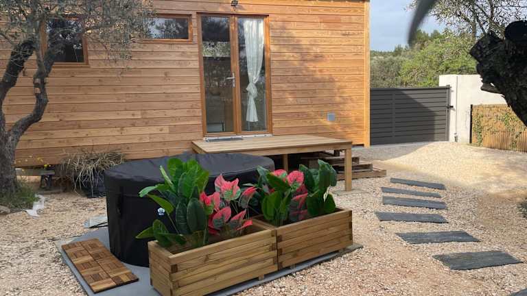La Tiny House des Oliviers et son jacuzzi bietet Übernachtungsmöglichkeiten in einer klimatisierten Ferienwohnung mit einem Schlafzimmer und einem Badezimmer. Die Unterkunft verfügt über einen Garten sowie eine Terrasse und ist nicht für Junggesellen-/Junggesellinnenabschiede oder ähnliche Feiern geeignet. Diese Privatunterkunft wird von einem privaten Gastgeber geführt.