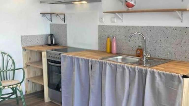 Das Ferienhaus bietet ein Schlafzimmer, eine Küche, die mit einem Kühlschrank und einem Ofen ausgestattet ist, sowie einen Flachbild-TV, einen Sitzbereich und ein Badezimmer mit Dusche. Handtücher und Bettwäsche werden zur Verfügung gestellt.