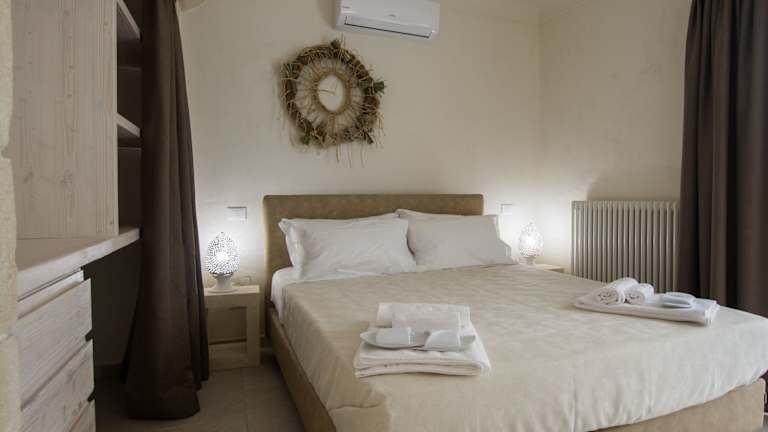Das klimatisierte Ferienhaus im La Torretta - Corte Dei Messapi Raro Villas Collection verfügt über ein gemütliches Schlafzimmer, ein geräumiges Wohnzimmer und eine voll ausgestattete Küche. Hier finden Sie alles, was Sie für einen angenehmen Aufenthalt benötigen, einschließlich Kühlschrank und Kaffeemaschine. Das Badezimmer ist mit einem Bidet und einer Dusche ausgestattet. Handtücher und Bettwäsche werden gestellt, um Ihren Aufenthalt so bequem wie möglich zu gestalten.