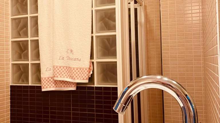 La Toscana bietet Übernachtungsmöglichkeiten in einem eigenen Ferienhaus, ausgestattet mit einer Terrasse und einem Pool, von dem aus die Gäste einen Blick auf das Wasser genießen können.