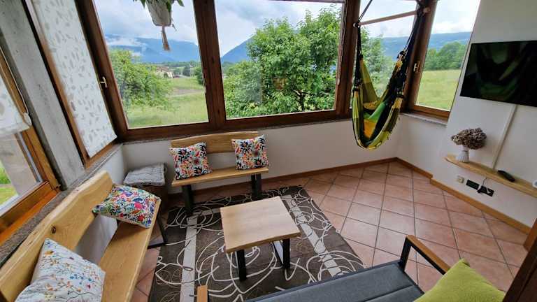Nach einem Tag in der Natur können die Gäste im Garten oder in der Gemeinschaftslounge entspannen. Die Umgebung lädt zu sportlichen Aktivitäten wie Skifahren und Fahrradfahren ein.