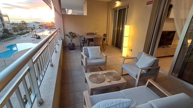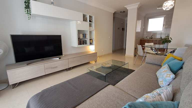 Im Modern apartment with a sea view in Palm-mar gibt es einen Außenpool, in dem Sie sich an heißen Tagen abkühlen können. Die Gegend bietet auch viele Möglichkeiten für Aktivitäten wie Radfahren und Tennis, so dass Sie sich fit halten können. Genießen Sie die herrliche Aussicht auf das Meer und entspannen Sie in der ruhigen Umgebung.