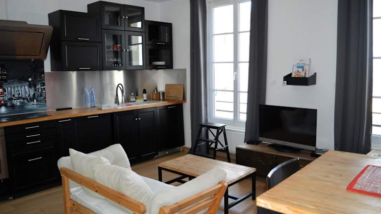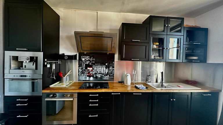 Die Ferienwohnung umfasst ein Schlafzimmer, ein Wohnzimmer mit Flachbild-TV und eine voll ausgestattete Küchenzeile mit Kühlschrank und Geschirrspüler. Das Badezimmer ist mit einer Dusche ausgestattet.