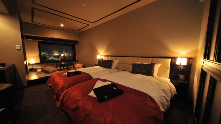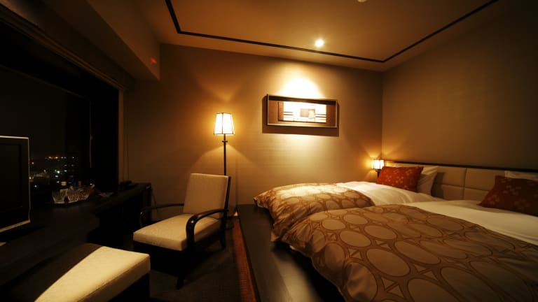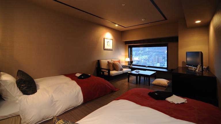 Die Zimmer sind klimatisiert und verfügen über ein Doppel-, Queensize- oder Kingsize-Bett. Einige Zimmer bieten Blick auf den Hafen von Hakodate, und alle sind mit einem eigenen Badezimmer mit massierenden Duschen ausgestattet. Zu den weiteren Annehmlichkeiten gehören ein Kühlschrank, eine Hosenpresse, ein Fernseher, kostenloses WLAN und eine Kaffeemühle für frischen Kaffee.